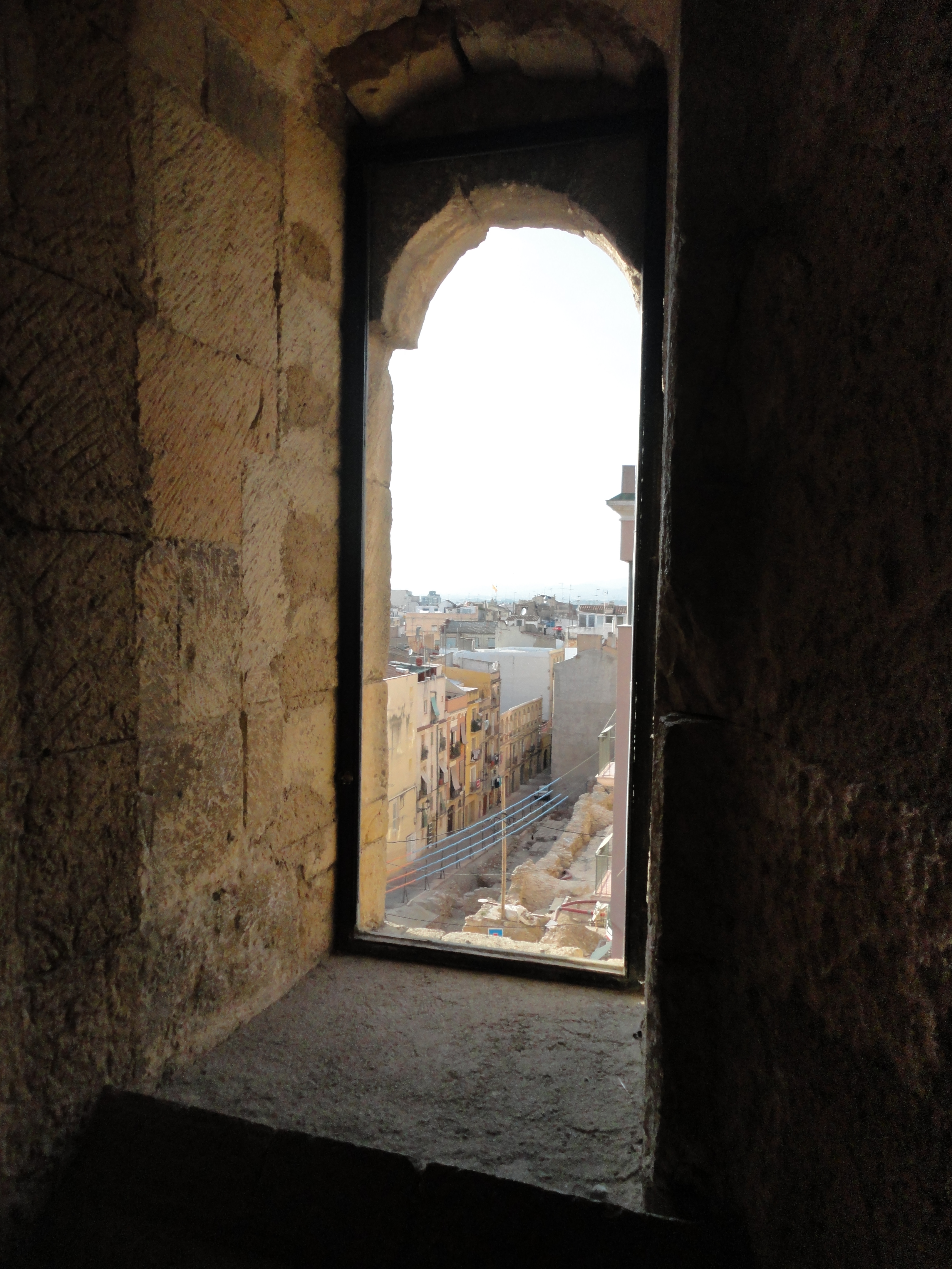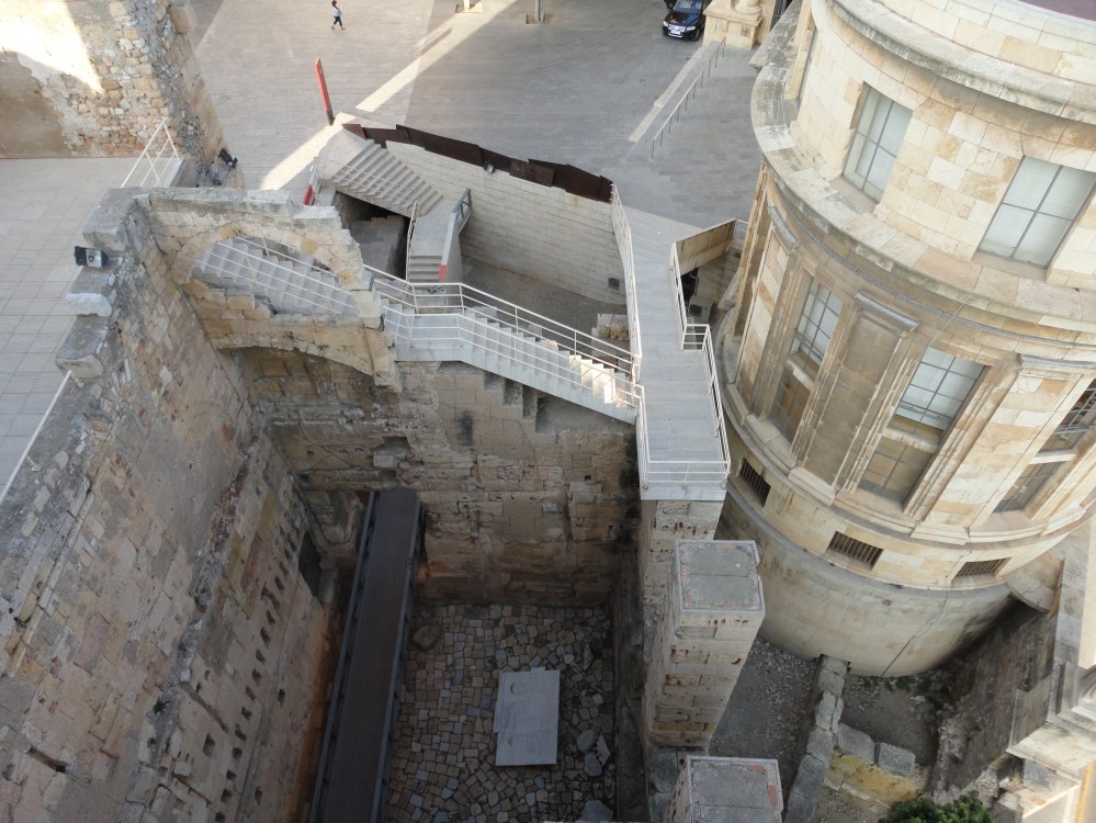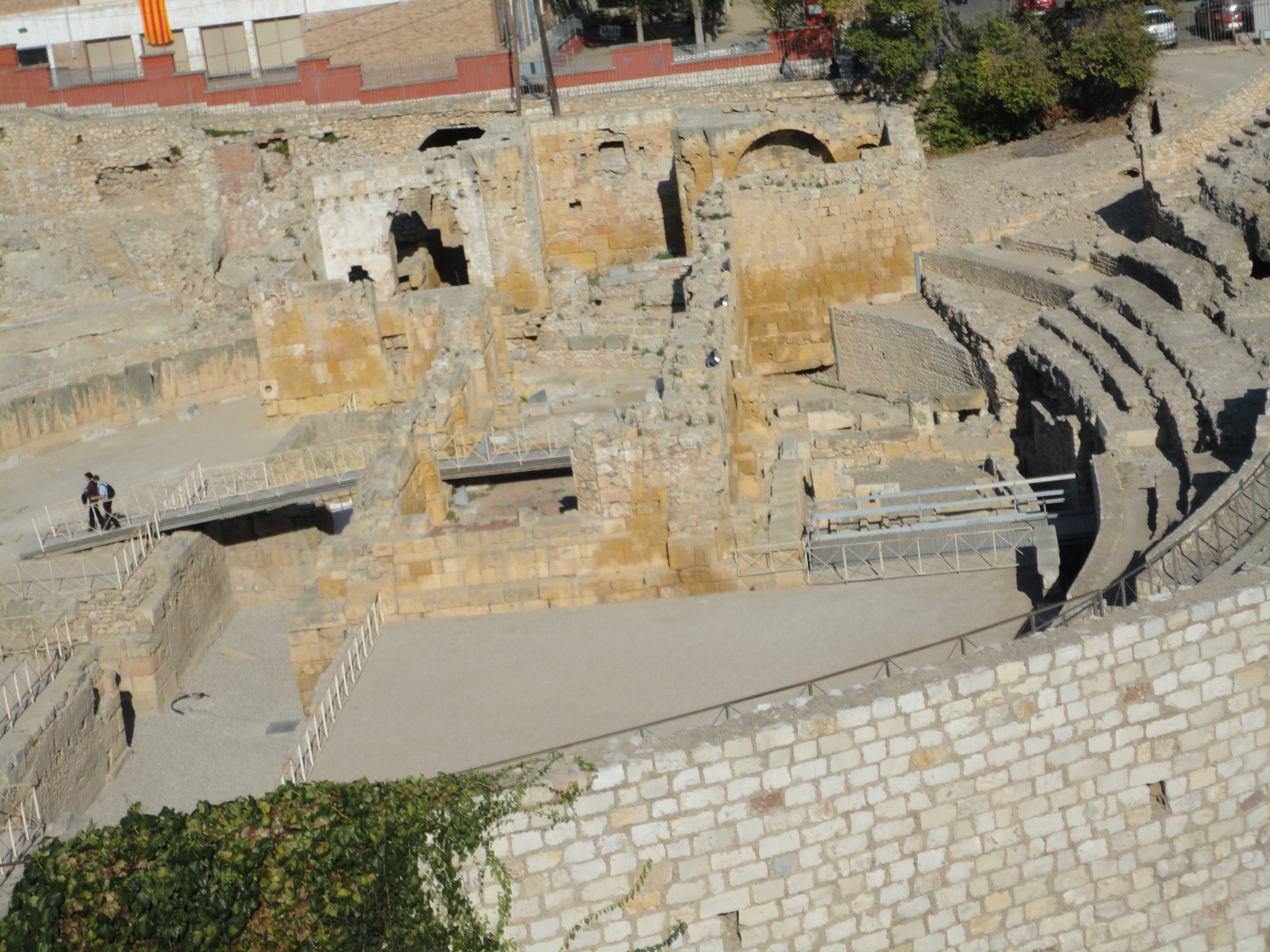 From the station, the Amphitheater is a bit of a walk up a hill and around a sort of dead man’s curve. The ruin lies beneath at the end of the turn. On the walk, we discovered, through signs, that Tarragona has more historic sites and ruins than we had known. We bought a passport like book that serves as admission to several sites, with a stamp added at each one.