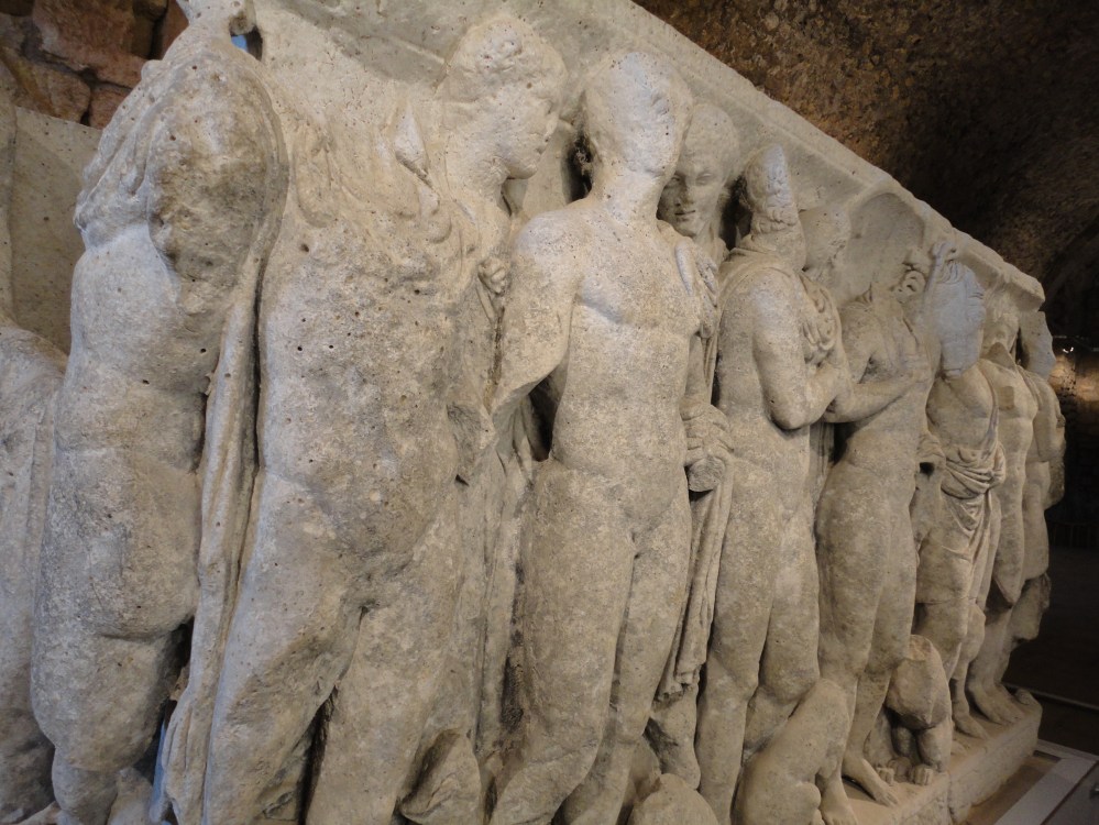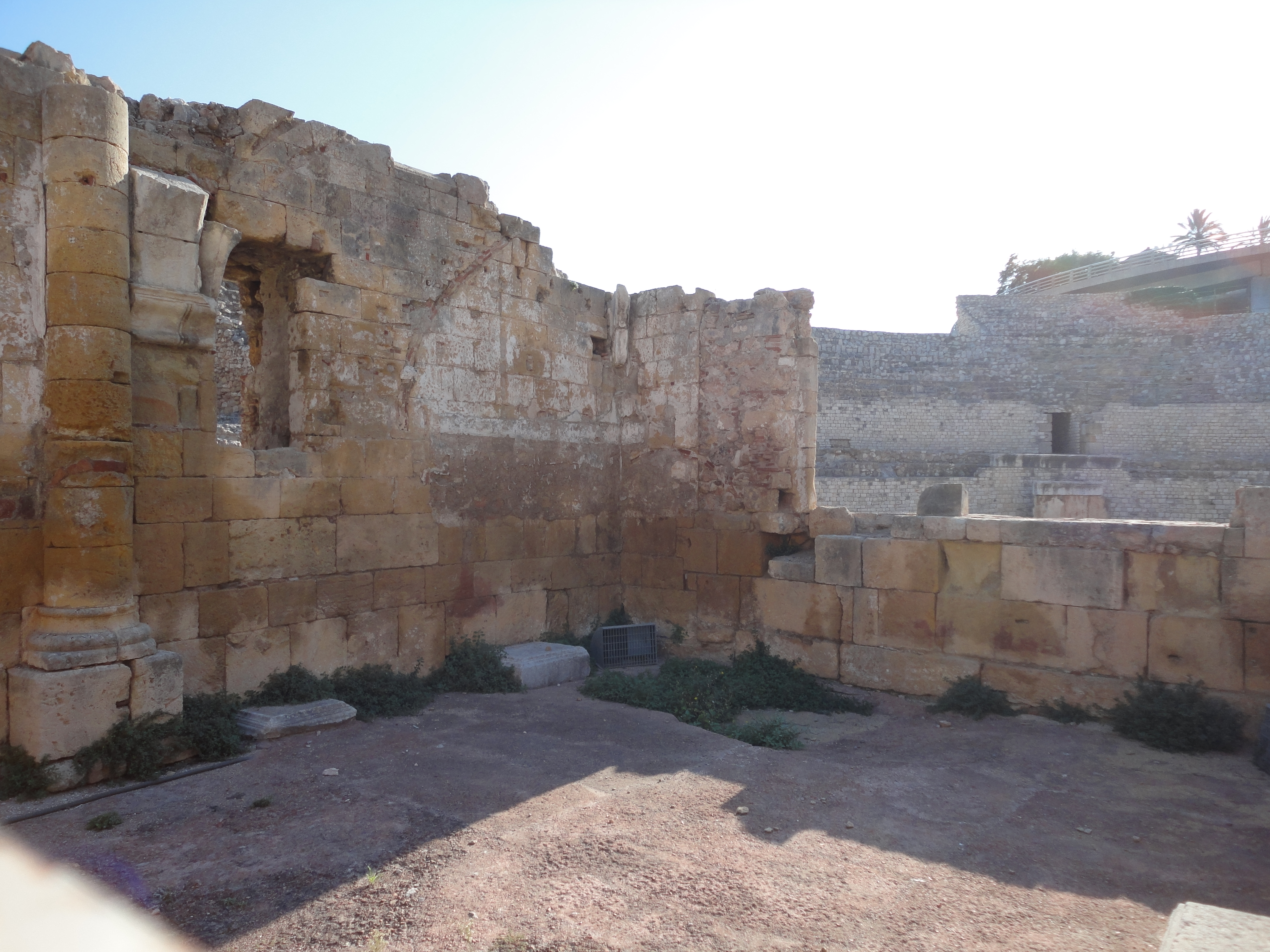 There was once a staging area under the arena, covered up by a board floor. The arena was used for blood sports, gladiator fights and wild animal fights, and sometimes other types of entertainment. It also included a temple to the goddess Nemesis. Later it was used for executions, and a Christian bishop, Fructuos and his followers Auguri and Eulogi were martyred there. Later, when Christianity became prevalent, a basilica was built in the arena in their honor, using re-purposed parts of the amphitheater’s walls. The amphitheater was later further re-purposed, and a church dedicated to Saint Mary of the Miracle was built within its ellipse. The church became a convent, and then a prison for the prisoners who were made to build the port.