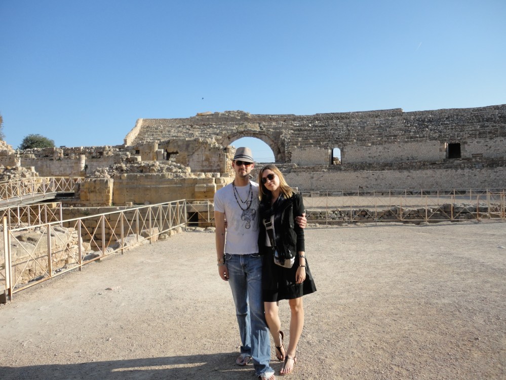 We loitered long at the amphitheater and then on the walk out had the epiphany that we might not have time to see everything. We walked quickly up a terraced stone path while I accused Thom of attempting to take pictures up my skirt. The path lead from ruins to currently used city, which was in turn broken by the Roman Circus Praetorium.