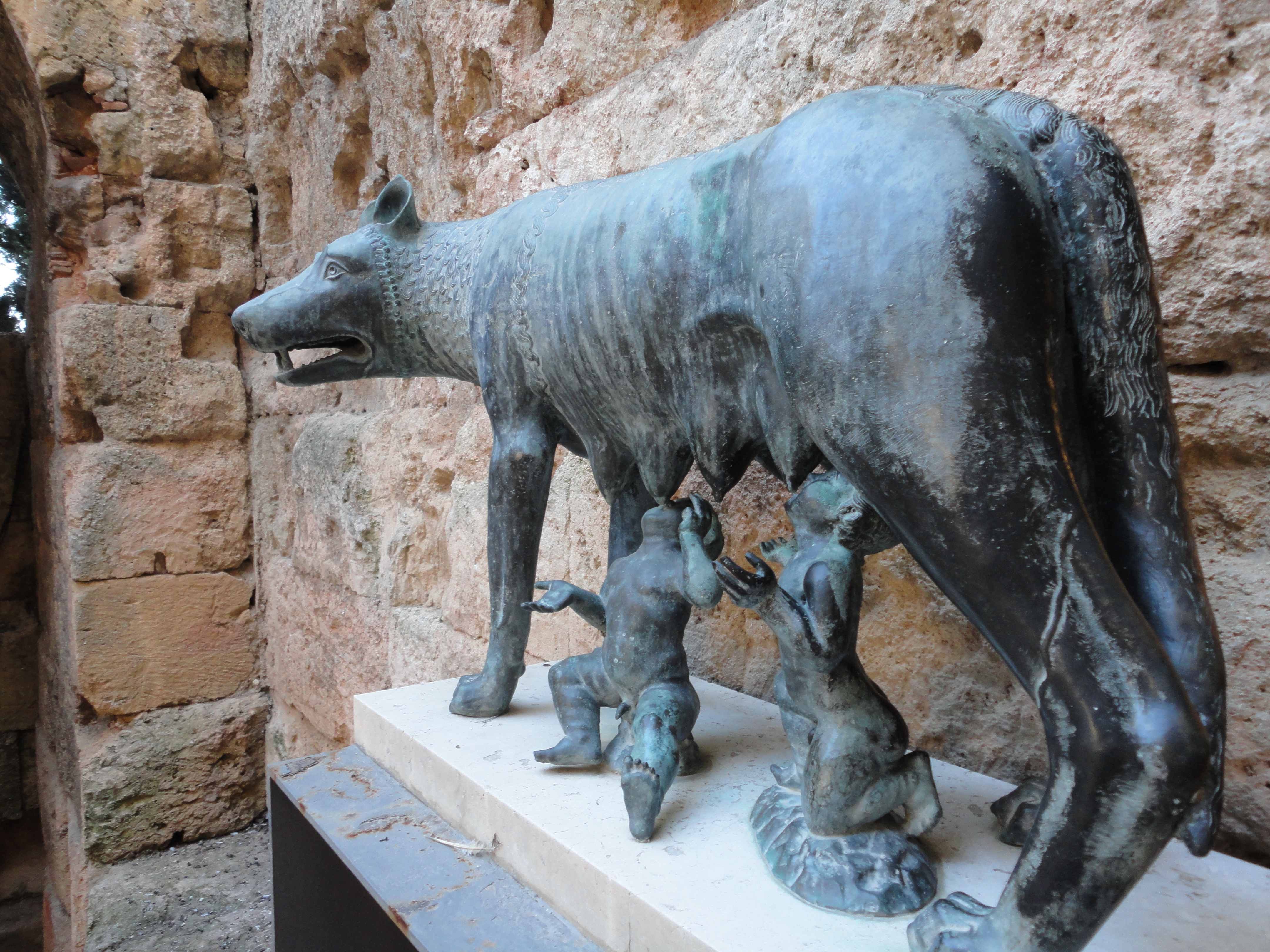 Eventually we were lead up, out of tunnels, into a building of a different era. We passed a statue of Romulus and Remus and their wolf-mother. Dark stone arching ceilings gave way to towers and staircases, and eventually we found our way to the rooftop. We stood between the sun and the town that we looked down onto like a map.