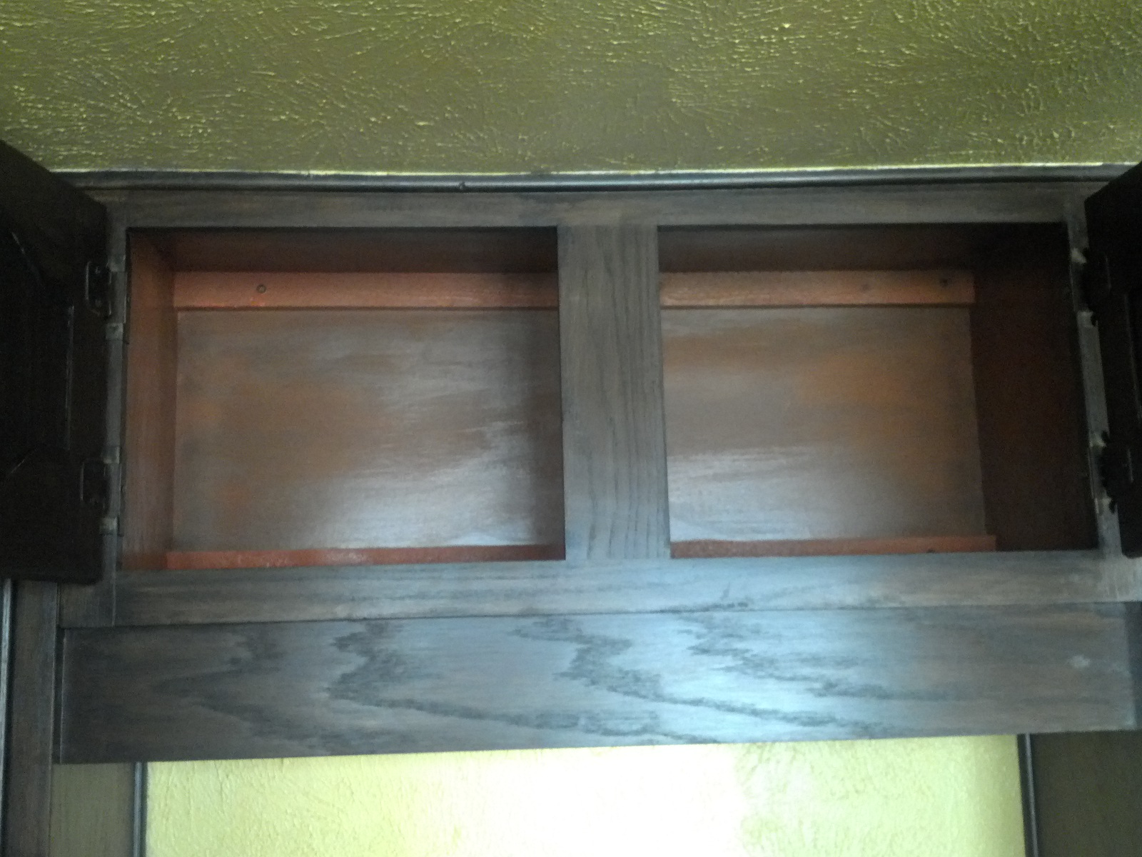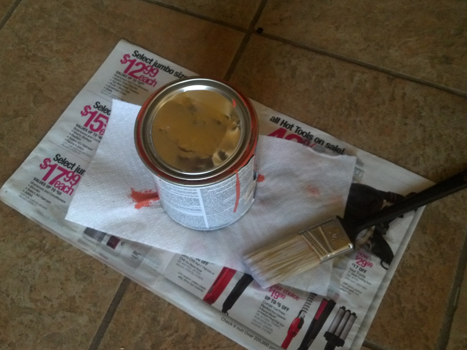 1 pm – Putting a coat of orange paint on the inside of what will be the barware cabinet.
