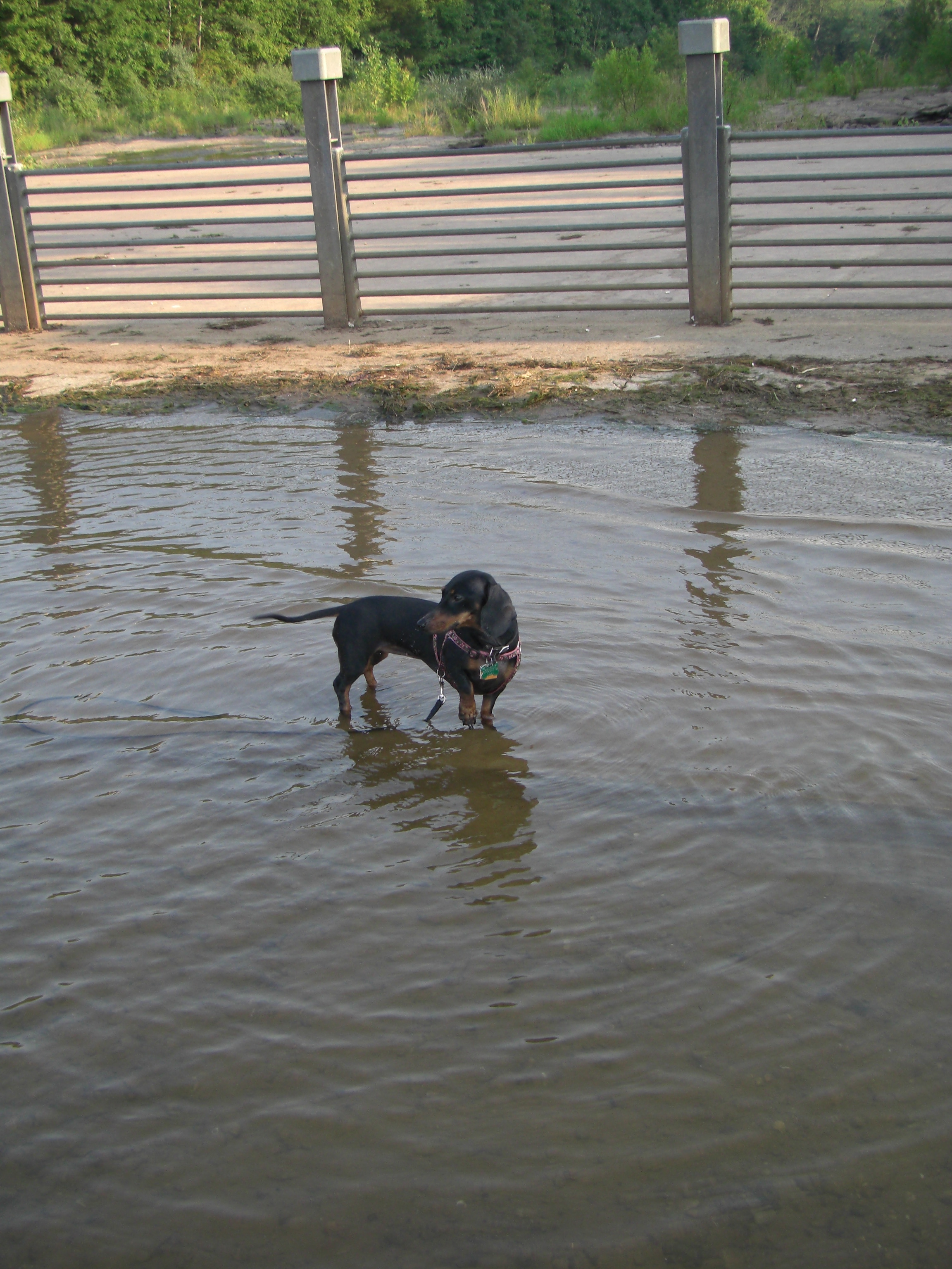 When I first got Meeka, I was paranoid that she would have back problems. I can even remember having a conversation with Thom before we got her in which I was afraid to add Dachshunds to the list of dogs to consider due to the possibility of back problems. But, after weeks of calling every shelter and Pet Finder ad about dogs under 30 lbs and failing to secure one, I decided to buy a puppy… after calling every classified ad we could find in Illinois, Missouri, Kentucky, and Tennessee the weekend Thom was on leave, Meeka lead the Dachshund breed to victory by not being already sold. (Probably due to the fact that another dog had bit her in the face and it looked a little nasty.)