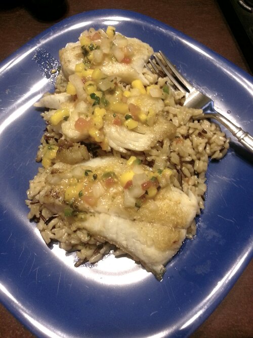 I would just like to say. .. waiting up for Thom = totally worth it. He has been going fishing lately,  and is apparently getting pretty good at it.  He just brought home a batch, and I cooked some of it with rice and the mango pico I made last night. Also,  he went for a bike ride afterwards, so I got to actually say “so long,  and thanks for all the fish.”  In short, good end to the night.