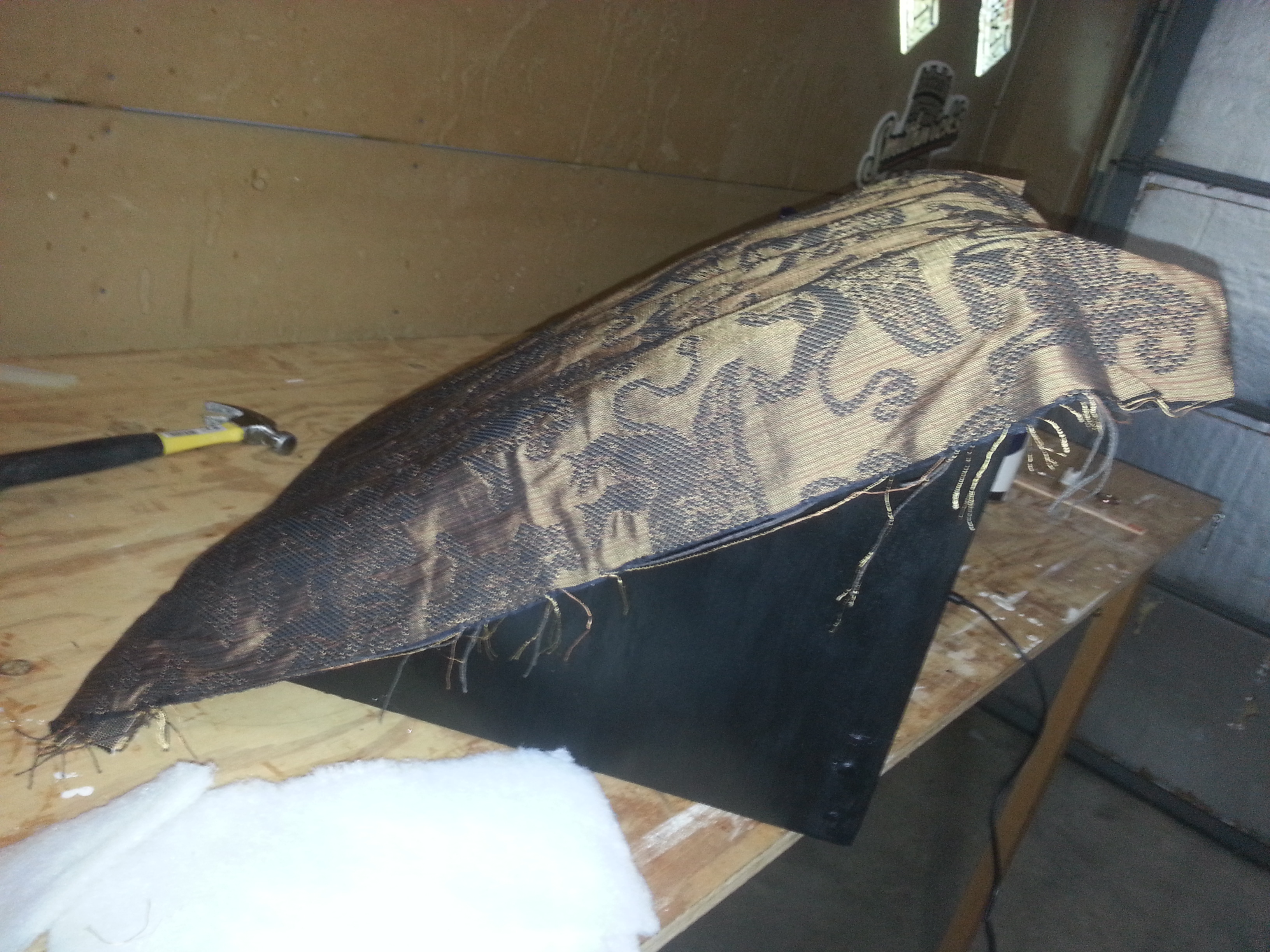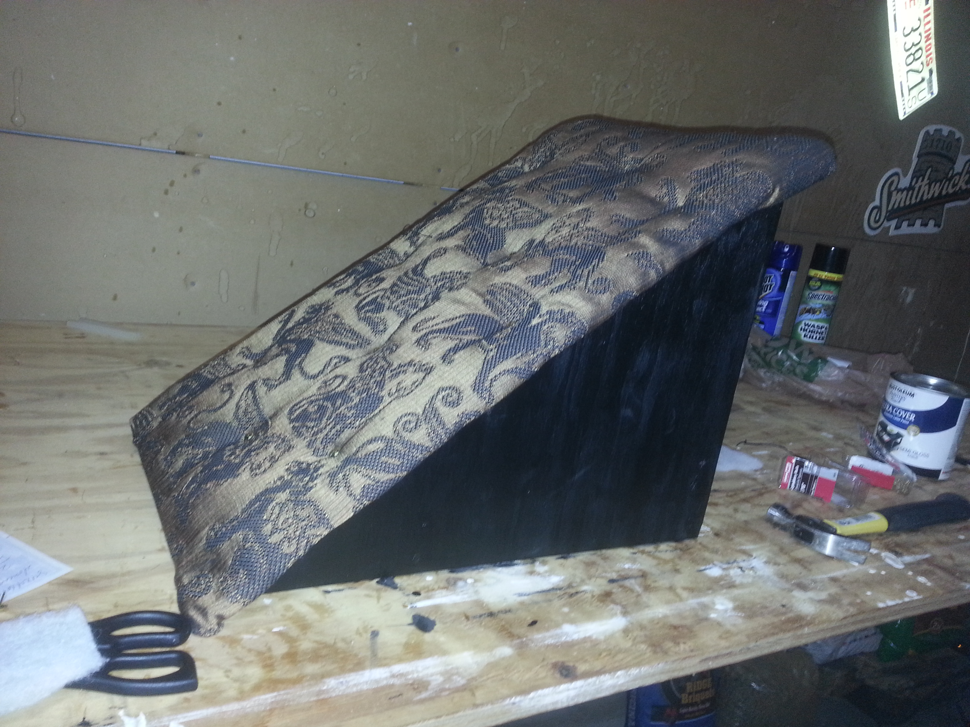 I’ll not bother posting the building process, as most people can figure out how to build a ramp, and also because despite that fact I made a bit of a mistake, which I’ll address later. But the upholstery was slightly less straight forward, and basically an experiment that turned out well, so that process is below: