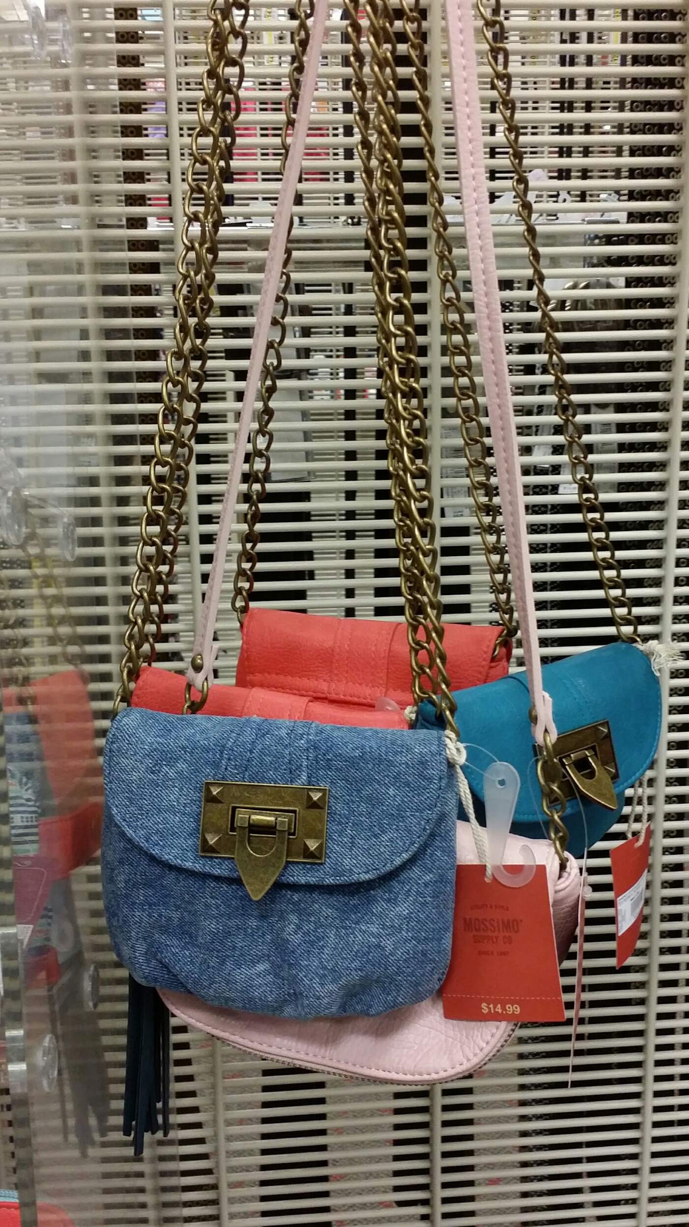 These Target mini-bags fall into the category of “design I like, that isn’t me”. They aren’t me, because floral isn’t my thing and neither is that particular vintage of denim. But with that out of the way.. I think the form factor is nice, and the bags hang just right. The strap is the right length, and despite the low price point, they went in for  statement hardware and a decent weight of chain for the strap. They also put fabric in the shoulder of the strap, which ensure that you’ll be able to stand to actually use the bag with out it biting into your shoulder.