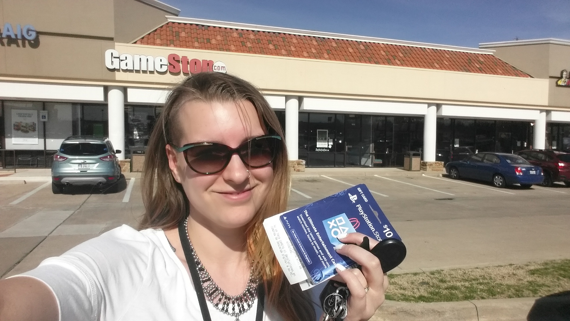 Major dork face going on there. Went to Gamestop on lunch, bought a PS Store card to buy PS Plus with. Pretty standard stuff. It was also @TiffToxic’s last day at that location.
