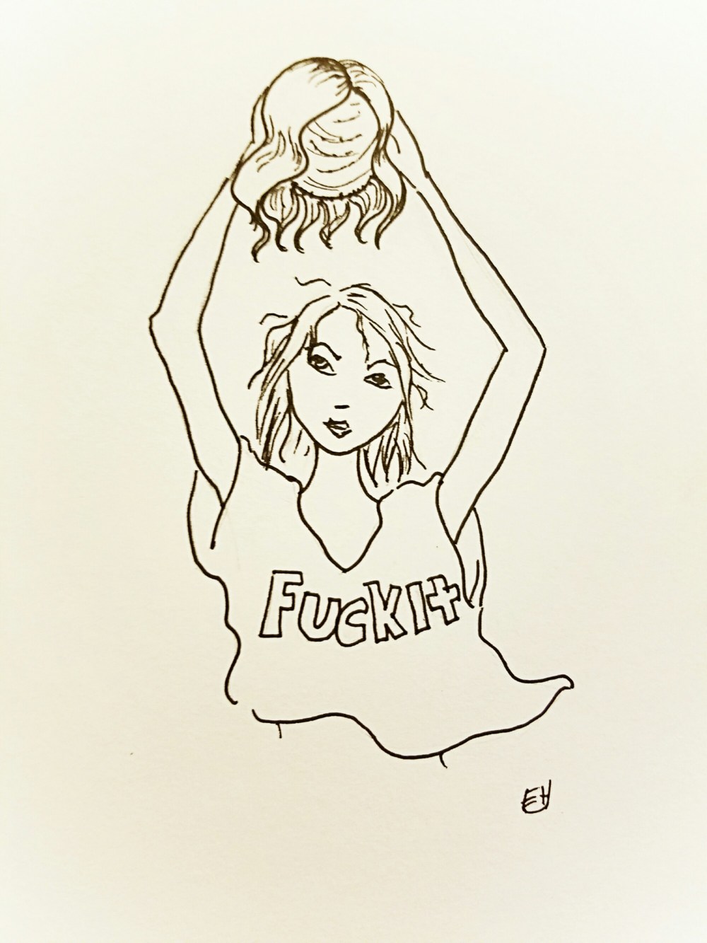 – Drawing a picture to illustrate my new found desire to put my hair out of my own line of sight for a few months.