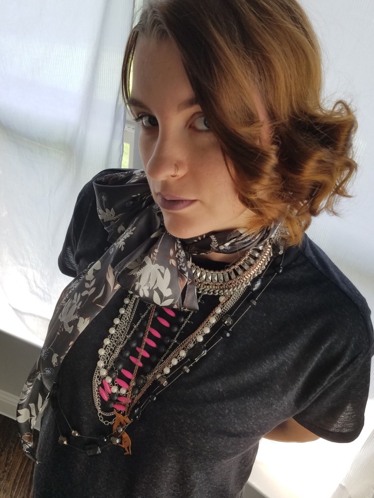 As Susie Bubble puts it, “scroll through #Bumpfie on Instagram and your eyes adjust to that linear striped pattern…” She’s right. There are a lot of horizontal stripes. What’s worse – the horizontal stripes ARE the flavorful pieces! There might be a little lace, there might be a little floral, but basically, if you’re looking at a maternity piece that looks like one of your regular basics but fitted for a pregnant person… that’s about as good as it gets. Trying to get pregnant? Well you better start working on your necklace collection now because necklaces will bear 65-73% of the burden of interest in your outfits for the next several months. Or you could wear a scarf – better time that pregnancy for some time that isn’t summer..
